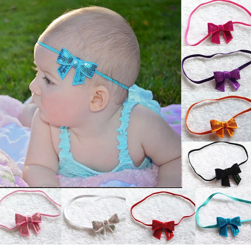 10pcs/lot Europe and the United States new sequins sequined bow child baby hair band elastic thin r